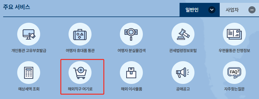 - 관세청 홈페이지 → ‘해외직구 여기로’ 메뉴 클릭