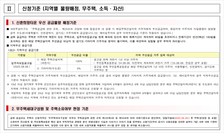 과천시 1년 이상 거주자는 우선 공급 대상이지만, 서울·경기·인천 거주자도 청약 가능하나 우선순위에서 밀릴 수 있습니다. 당첨 후 입주 시점까지 무주택 자격을 유지해야 하며, 조건 위반 시 계약이 취소됩니다.