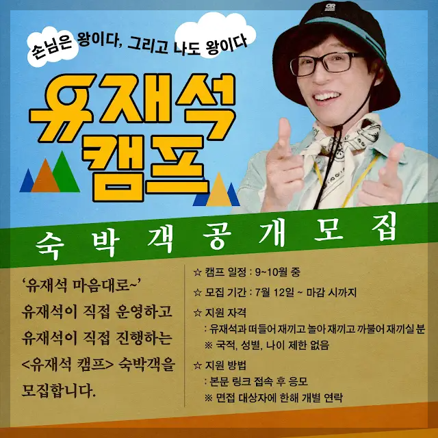 넷플릭스가 공개하는 새로운 리얼리티 예능 ‘유재석 캠프’가 일반인을 대상으로 숙박객을 모집하고 있는데요,