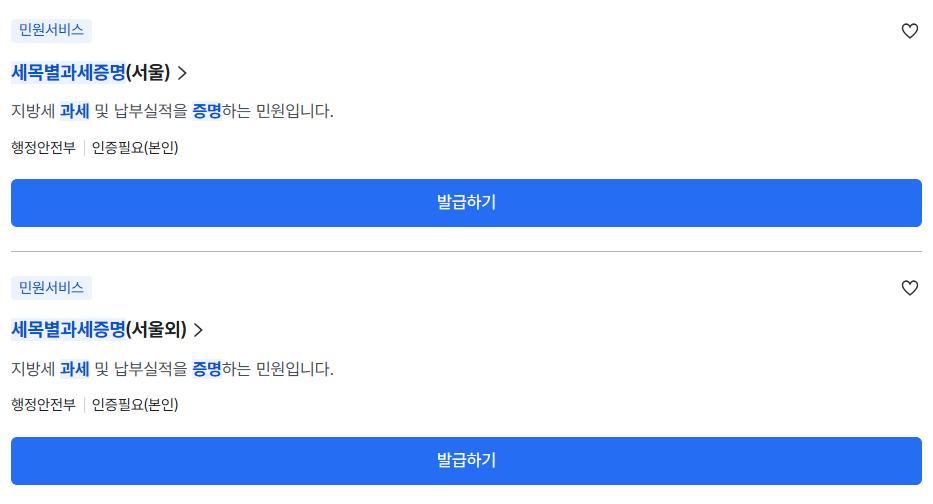 실제로는 ‘세목별 과세증명서’를 발급하는 과정을