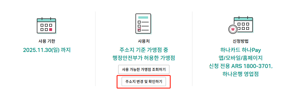 - 사용기간내 사용지역 변경 가능 (카드사 앱,홈페이지에서 변경 신청)