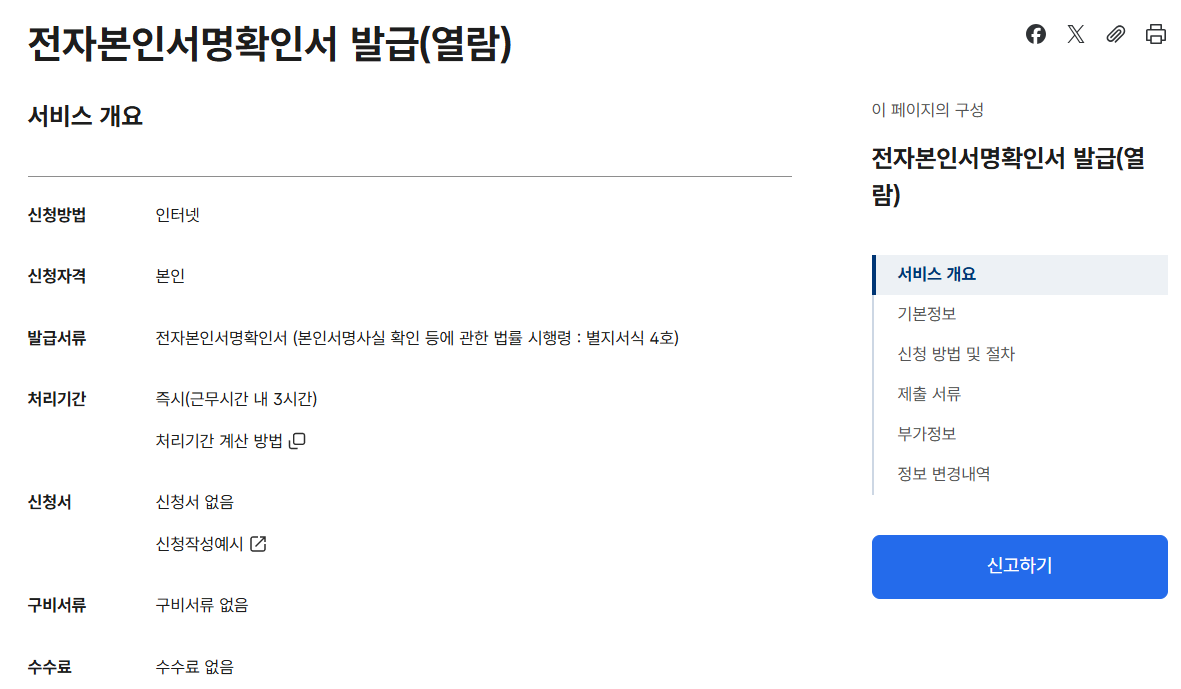 - 신청 시 신분증과 신청서를 제출하면 이후에는 온라인 발급이 가능해집니다.