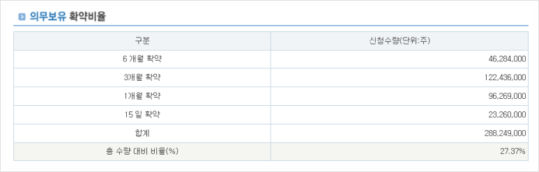 또한 의무보유 확약 비율은 27.37%로 비교적 양호한 수준이며, 이 중 90% 이상이 1개월 이상 확약을 선택하여 상장 직후 급격한 매도 압력이 다소 완화될 것으로 예상됩니다.