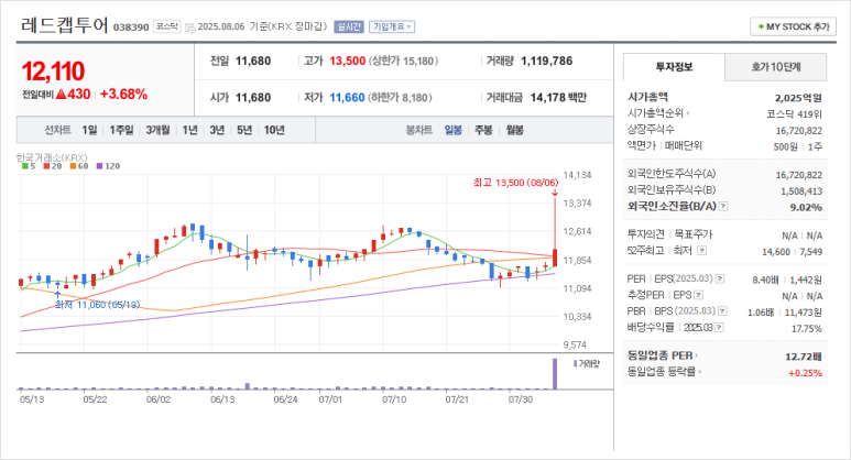 레드캡투어는 렌터카와 출장관리 서비스가 주력입니다. 중국인 관광객이 지방 여행을 확대할 경우 렌터카 수요 증가로 간접적인 혜택이 기대됩니다.