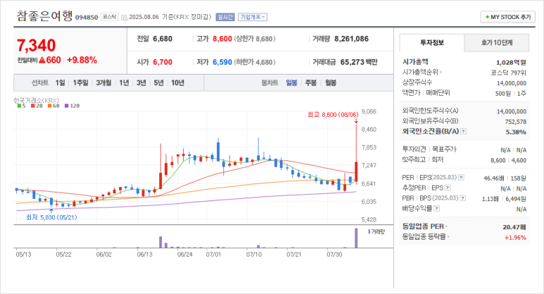 참좋은여행은 테마형 패키지 상품과 B2C 온라인 채널 강화 전략을 추진 중입니다. 중국 단체관광 수요가 살아난다면 상품 포트폴리오 확장이 가능하다는 기대감이 반영되었습니다.