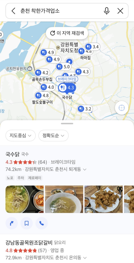 또한 네이버지도, 카카오맵, 티맵 등의 지도 앱에서도 ‘착한가격업소’로 검색하면 지도상에 표시된 위치와 함께 상세정보를 확인하실 수 있습니다. 별도의 회원가입 없이도 간편하게 주변 정보를 탐색할 수 있어 실용적입니다.