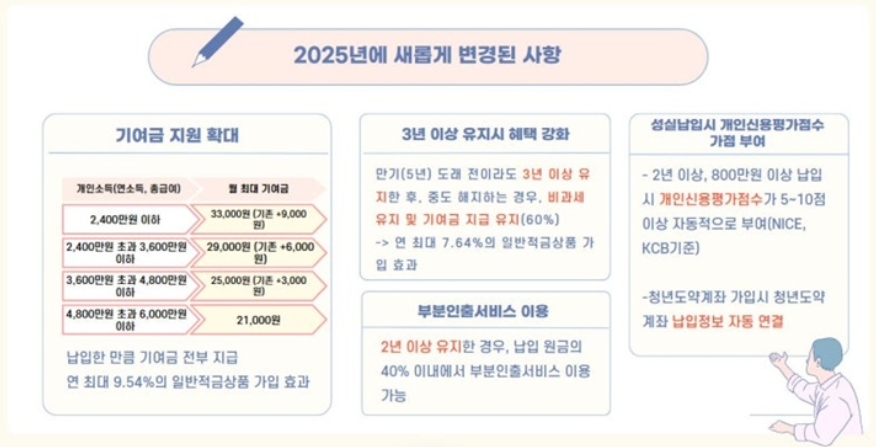 - 3년 이상 유지 후 해지 시, 정부 기여금 일부와 비과세 혜택 인정