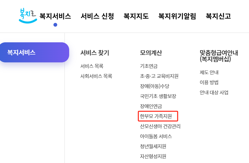 - 부모 중 한 명이 만 24세 이하인 청소년한부모가정